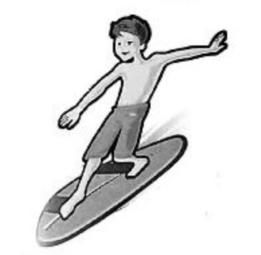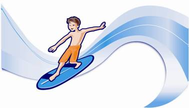 由站在蓝色冲浪板上、着橙色短裤的男孩及由深浅蓝色条带构成的波浪组合而成,其图形元素组合以及与色彩的结合使得该标识与李庆的商标