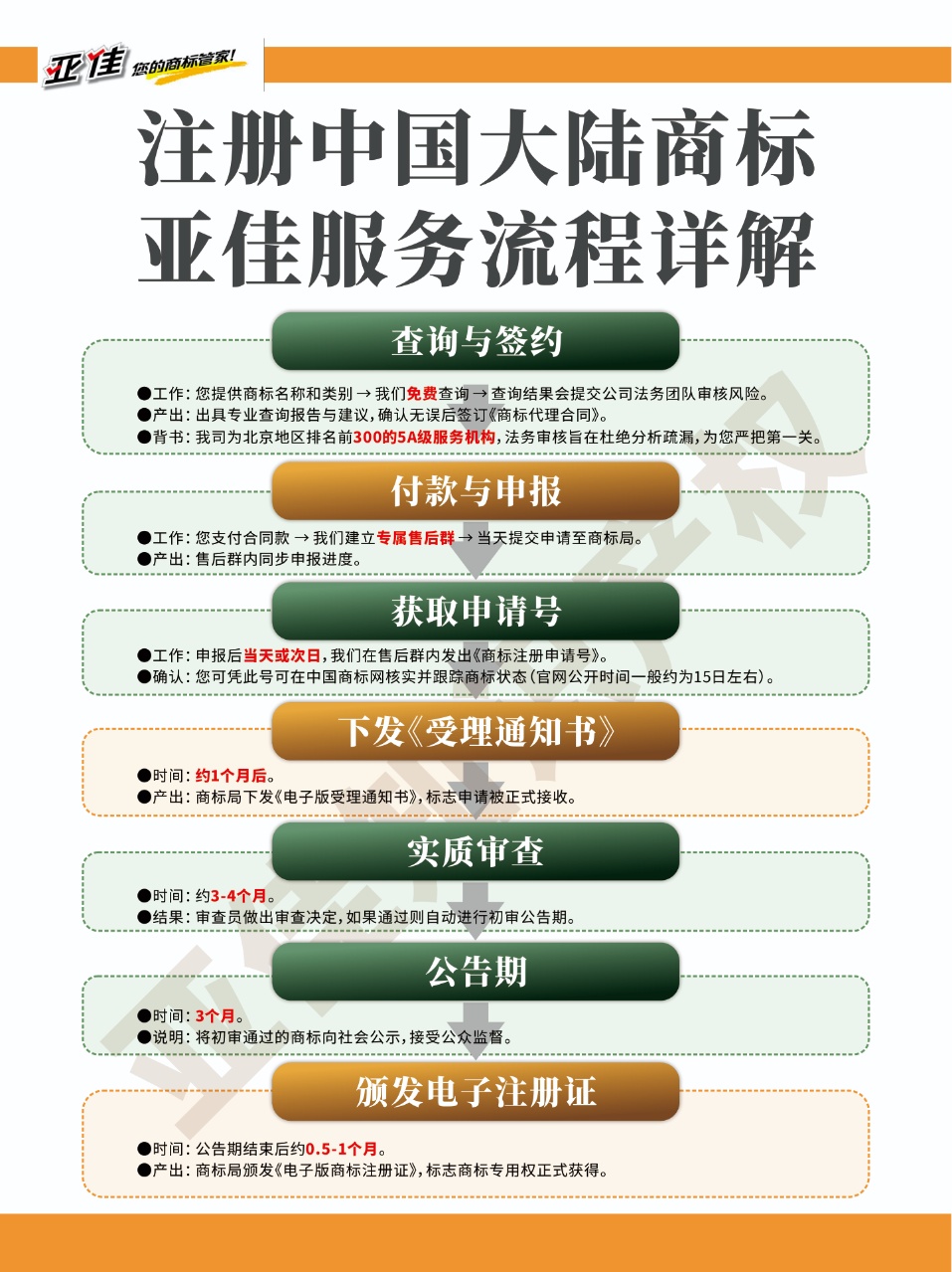 目前注册商标总耗时需15个月左右。由于商标申请耗时较长,我们的商标顾问与流程部会一起为您跟踪这个案件,随时在线解答您的问题)
